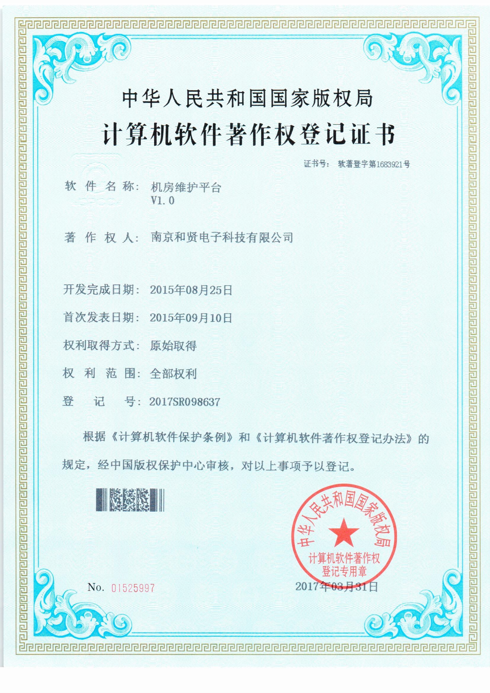 计算机信息系统集成及服务叁级资质 2017年3月