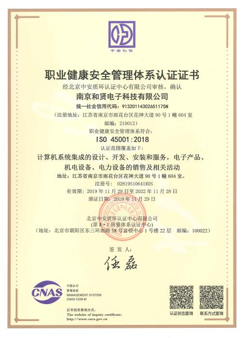 ISO45001职业健康安全管理体系认证 2019年5月